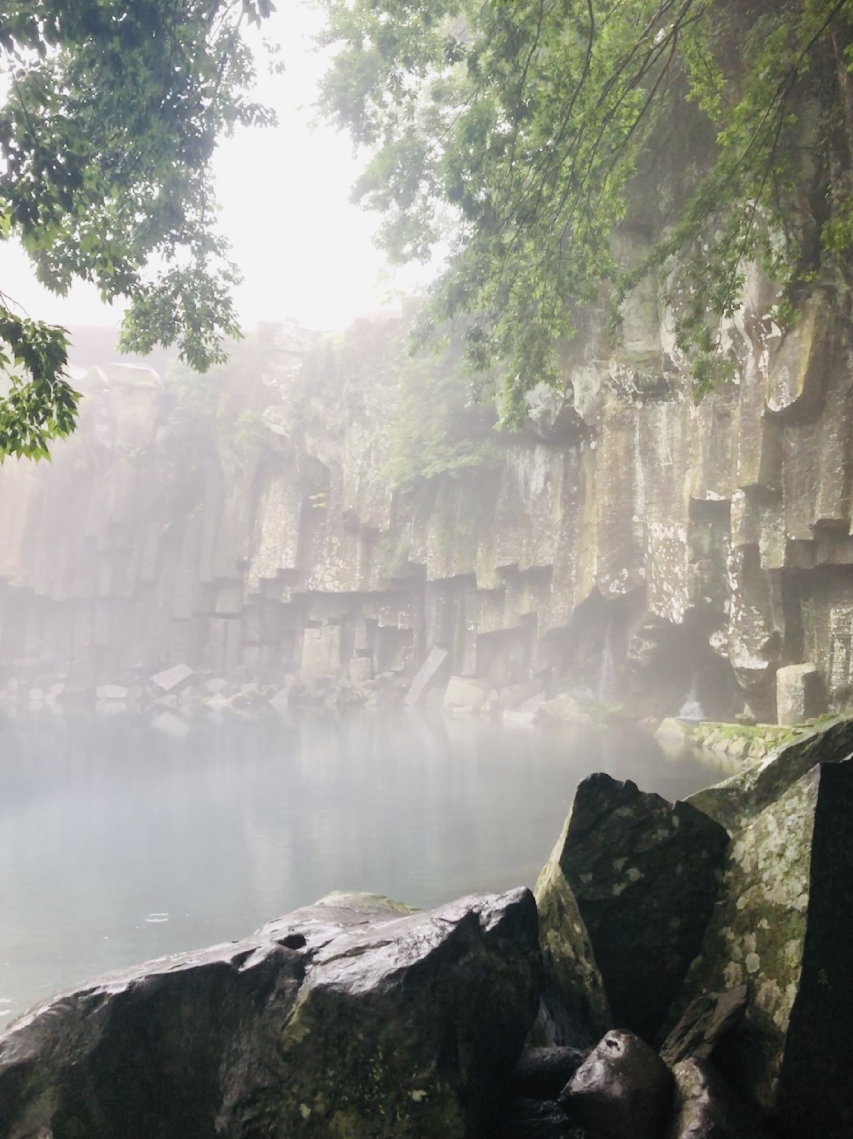 The next day, we woke up early as a result of having gone to bed before 10 the night before. That turned out to be lucky because that meant that we were the first to visit the 천지연폭포 – the Cheonjiyeon waterfalls. This was the kind of breathtaking experience you just had to be there to understand. The falls were gorgeous and the misty weather made them look even more like something out of a fairytale. The pictures do not do justice to the true beauty of the waterfalls, but they give a vague idea of what it looks like.