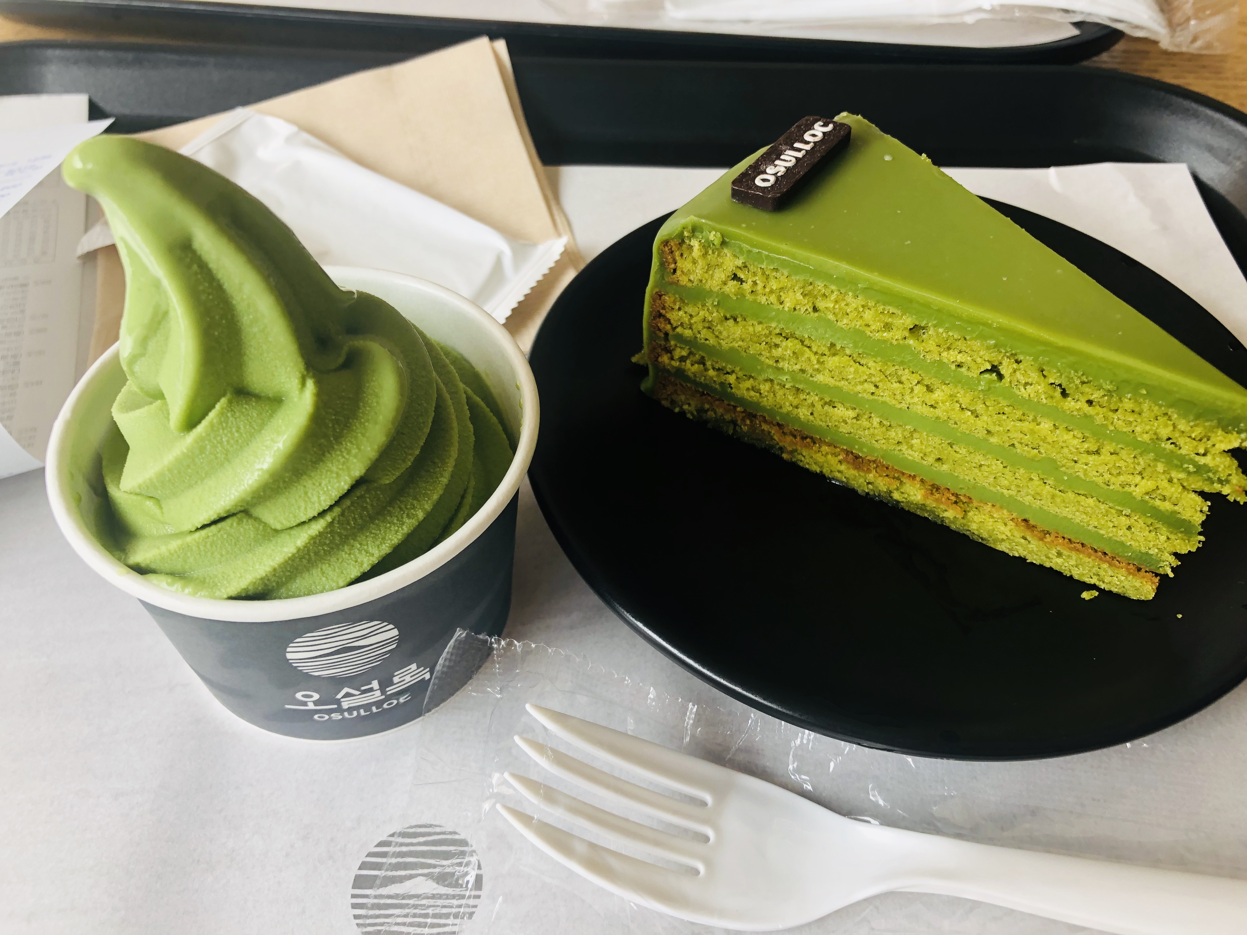 By the end of the afternoon, we were pretty tired so we decided to drive back to our hotel in Seogwipo on the south side of the island to have dinner and go to bed early. We had been up since 4am to catch an early morning flight to Jeju. On the way back, we stopped by the Osulloc green tea museum for a delicious treat.
